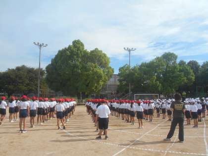 14日(木)は、全校練習の日でした。3年生の子どもたちが入学してから、全校児童一緒に運動会をすることは初めてです。全校児童揃って、開会式や全校ダンスをしました。