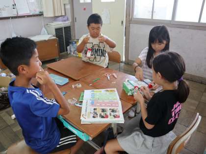 お家の方に協力していただいたおかげで、たくさんの材料が学校に集まりおもちゃ作りを楽しんでいます。今日は「くるまをつくってみたいな〜」のつぶやきから、みんなでペットボトルキャップをつかってくるまをつくりました。「タイヤの穴をもっと広げてみないとだめだな」「かざりをつけて走らせてみたい」などグループでたくさん話し合いながら学習を進めることができました。