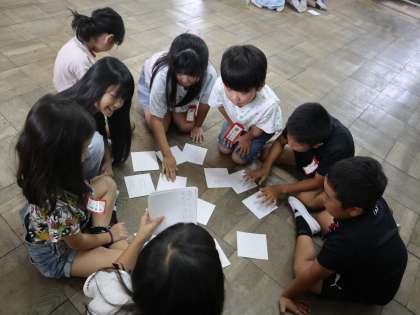 2年生で習った漢字を使って漢字カルタをしました。取り札には漢字を、読み札にはその漢字を使った文章を書きました。取った枚数を競いながら、楽しく漢字の学習ができました。