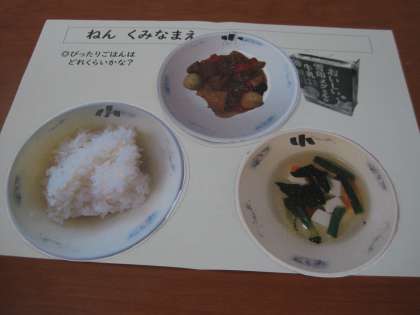 いつも食べている給食の量が、本当に自分の体に合っているのかを低学年・中学年・高学年それぞれの量から適量を考えていきました。