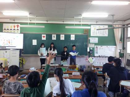 現在、外国語では自分や人のことを紹介する表現を学んでいます。