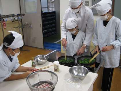葉は、バター炒めにして、根の部分はピクルスにしました。みんなテキパキと動くことができたので、素早く調理ができました。