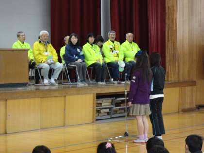 小学校6年間,どんな日でも毎日登下校を見守ってくださった地域の方々に心から感謝するとともに,中学校に行ってもまたお世話になるので「よろしくお願いします」の気持ちで通学してほしいと思います。