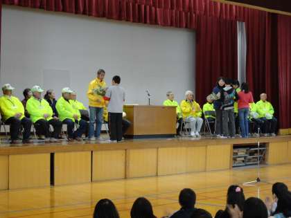 先週の火曜日に,学校安全ボランティア感謝の集いがあり,学校安全学校安全ボランティアの方々に一年間の感謝の気持ちを込めて,感謝の言葉と花束を贈りました。