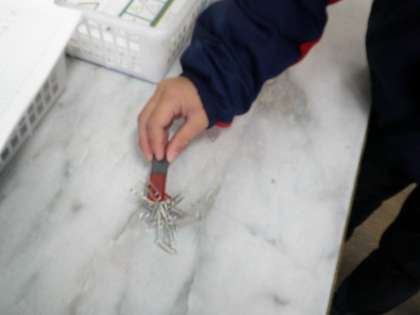 理科の「じしゃくのふしぎ」の学習では、磁石を使っていろいろなものを引き付けることができるか確かめました。教室の中のいろいろな場所に磁石を近づけてみると、いろいろなものが引きつけられることがわかりました。予想をしながら、磁石を近づけたり、何度も確かめたりと時間の限りたくさん見つけていました。