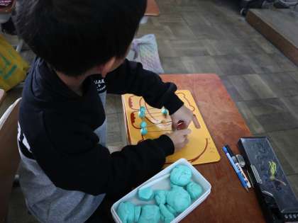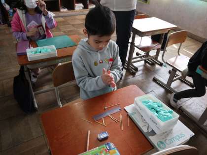 今日は、ひごとねんど玉をつかってはこのかたちを作りました。「どのねんど玉からも3つの辺のひごがでているな〜」と作ってみて気がつくことがありました。実際に作ることで構造のイメージがもててきたようです。