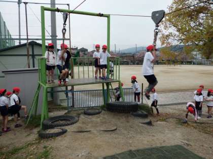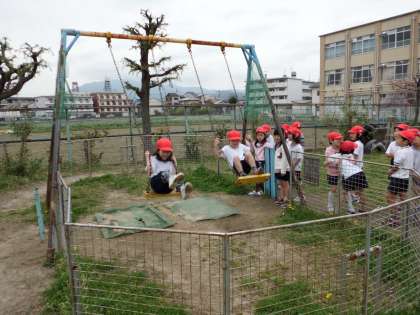 今日、ロープウェーの使い方の学習をしました。子どもたちは1年生の時からロープウェーが使いたかったようで、学習した後、列を作ってロープウェーをやっていました。またブランコの使い方ももう一度確認しました。ルールを守って楽しく安全に遊んでほしいです。