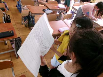 国語科では、たんぽぽのちえの学習に取り組んでいます。たんぽぽにはどんなちえがあるのか、友達と交流しながら見つけていきました。これから、いちばんすごい!と思うちえについて考えていきます。