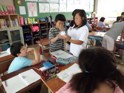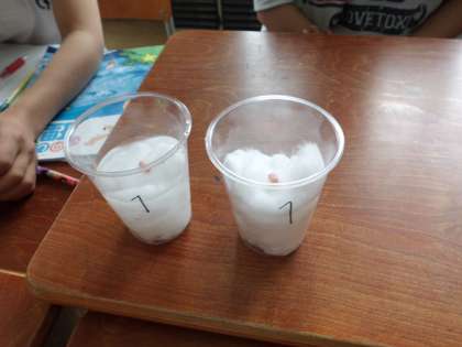 みんなで実験方法を考えました。すると,「片方は水を与えて,もう片方はかわいそうだけど水をあげないようにする」という意見が出たので,グループごとに実験の準備をしました。結果が出るのが楽しみです!