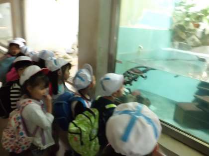 お弁当の後は、クラスで動物園をまわりました。カバの継美ちゃんがお水の中に入っていてお顔が見えません。みんなで、「継美ちゃ〜〜〜ん!!!」と呼んでみました。しかし・・・残念。今日は継美ちゃんのお顔は見れませんでした。