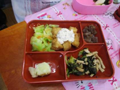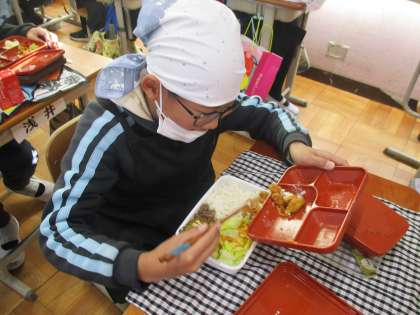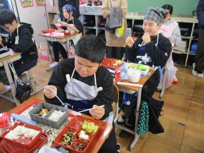 中学校給食の試食を行いました。今回は試食するだけでなく、普段自分が使っている弁当箱に給食を詰め替え、量がどのくらいなのかを確かめました。ぜひ、中学校でもおいしい給食をいっぱい食べ、大きく成長してほしいと思います。