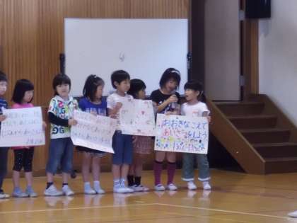 「おはよう」の取り組みを発表しました。目標を達成するために、「気持ちのいいあいさつ」を心がけていきたいと思います。