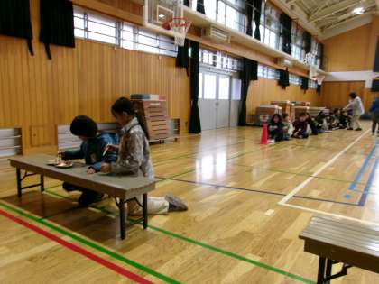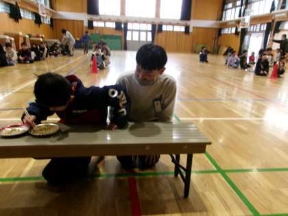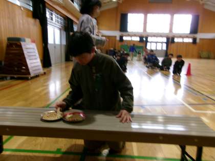 給食週間の取組で 健康委員会主催の 豆つまみ大会がありました。