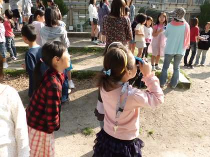 昨日、金環日食がありました。学校で見た人もいれば、お家やテレビで見た人もいました。子どもたちは、「びっくりした。」「太陽が三日月みたいやった。」「太陽がどら焼きを食べた時みたいに欠けてた。」と喜んでいました。