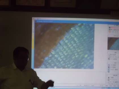 チョウの羽や触覚,蚊の口を拡大したものも見せていただき,いつも見ているものとは違うことに驚いていました。