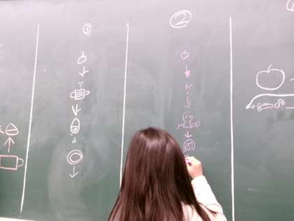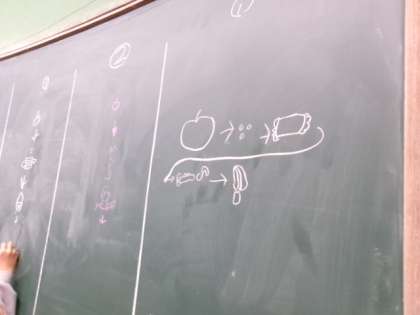 今日の中間休みでは、各係が考えた絵しりとりゲームをしました。