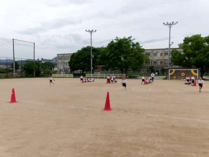 体育の学習では「リレーあそび」をしています。ルールを確かめながら、どうすればより速く走ることができるのかチームで作戦会議をしながら、学習を進めていきました。