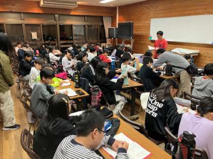 初日のふりかえり。山の家での1日目の生活をふりかえり、学びを深めています。