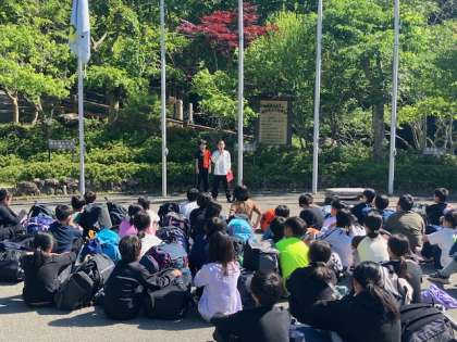 退所式を終え、バスで帰ります。