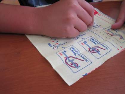 家庭科の学習で、針に糸を通し、練習布になみぬいを練習しました。集中して一つ一つていねいに縫うことができました。