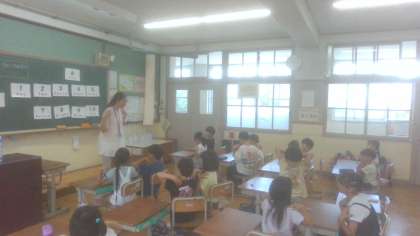 英語活動では、「いくつかなクイズをしよう」の学習に取り組みました。チェルシー先生と一緒に、1〜10までの数を言ったり、数を尋ねたりする活動を楽しみました。