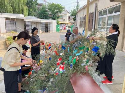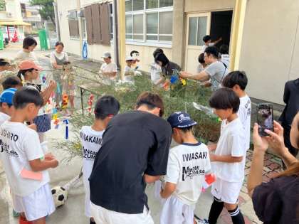今日はおやじの会主催の七夕まつりがありました。みんなのお願い事が書かれた短冊を笹に飾りました。