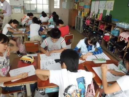 最後に言葉探しゲームをしました。たくさんのアルファベットの中から,グループで言葉を探しました。相談したり教え合ったりして,たくさん探すことができました。