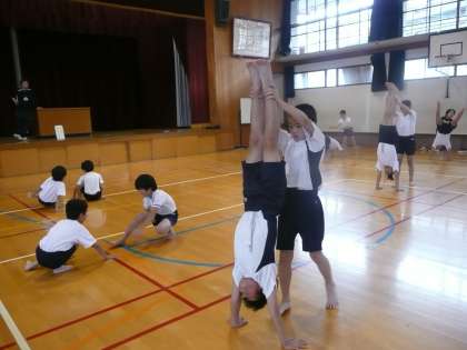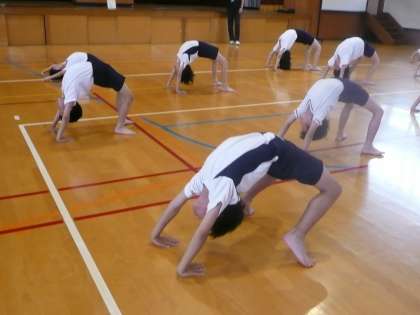 9月22日の運動会にむけて 「組み体操」の 学習が始まりました。