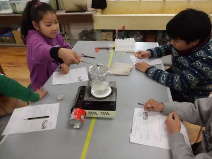 今日は、水が沸騰したときに出るあわは何なのかを実験を通して確かめました。水を入れた試験管を水が沸騰したビーカーに入れて観察したり、薬さじを近づけたときにどのような現象が見られるかを調べました。