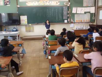 国語の学習で、みんなに向かって話したり,ふたりで話したりする活動をしました。ゴールデンウィークの話をしたり、絵の中にかいてあるものを説明したりしました。話すだけではなく,友だちの顔を見て、話をしっかりと聞くことができました。