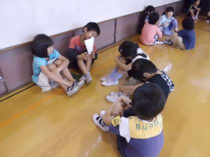 遠足に行くグループのメンバーで一緒に遊びました。2年生の子どもたちがゲームや遊びを考えてくれました。ハンカチ落としやすごろく、ジャンケンゲームなど1年生の子どもたちはとても楽しんでいました。明日、遠足に行けることを子どもたちはとても楽しみにしています。