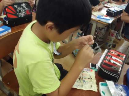 友達どうしで教え合いながら,しっかりとぼたんをつけることができました。