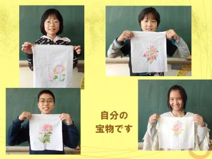 作品は額に入れて持ち帰りました。すばらしい絵画のようで,みんな大切に飾ると言っています。