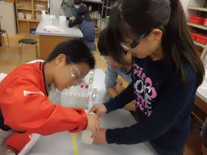 身の回りにある化学と環境について三洋化成さんによる出前授業がありました。界面活性剤の働きをマヨネーズ作りを通して学びました。