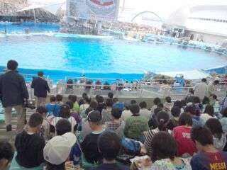 イルカスタジアムでお弁当を食べ,そのあとイルカショーを鑑賞します。