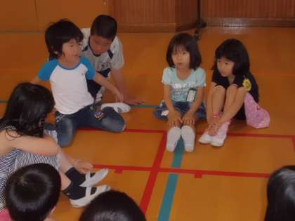 第1回目のたて割り遊びでは,グループの人の顔合わせをしました。