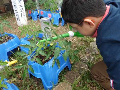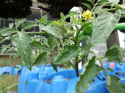 この前に黄色い花が咲いていることに気が付き、今日リリコをみると緑の実が1つなっていました。赤い実になって収穫することが楽しみですね。