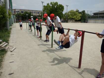 体育で鉄棒をしています。