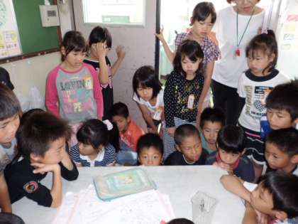 朝のスピーチが終わった時,「先生生まれてる!」と・・・。