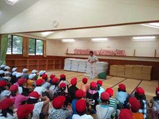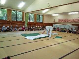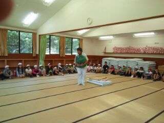 オリエンテーションで寝具準備の仕方を教わりました。みさきの家のシーツはちょっと変わっています。ふとんのときは?シュラフのときは?・・・みんな一生懸命聞いていますね。