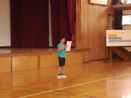 9月の保健目標は「きそく正しい生活をしよう」です。みなうずタイムで,保健委員会から発表をしました。毎日,きそく正しい生活をしていますか?決まった時間に ごはんを食べたり,早ね早起きをするなど,きそく正しい生活をすると,からだもこころも いつも元気でいられることでしょう。もうすぐ運動会ですね。元気いっぱいにすごし,楽しく本番をむかえましょう。