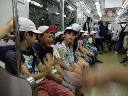 遠足で京都市動物園に行きました。前日まで雨が降って,お天気が心配でしたが,快晴で遠足日和の一日となりました。朝8時30分,学校から嵐電・地下鉄に乗って京都市動物園へむかいます。電車内では,2年生として,南太秦小学校の代表として,ふさわしい態度で過ごす姿が立派でした。