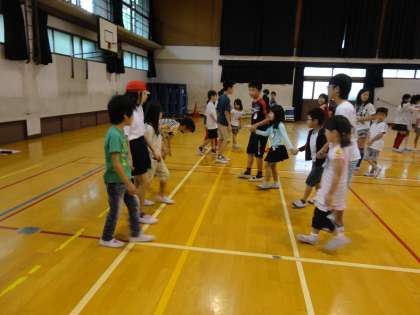 今年度初めてのたてわり遊びがありました。まずは顔あわせ。一年間を通して一緒に活動する仲間を知り,そのあとに花いちもんめをしました。まだぎこちない雰囲気ですが,少しずつ仲良くなれるといいですね。