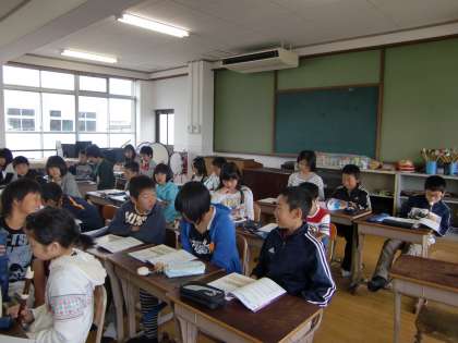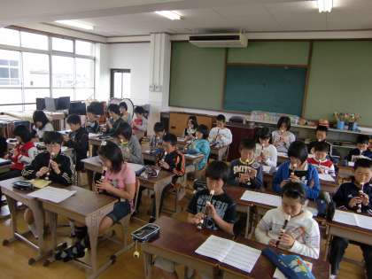 学年の歌「Believe」をリコーダーで演奏しています。今日から「やさしい風に」という曲の学習を始めました。