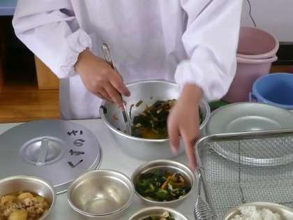 給食の配膳を自分たちでがんばっています。