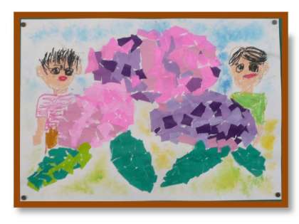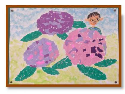 パート1で行った 折り紙をちぎって貼ることを 「あじさい」に挑戦しました。