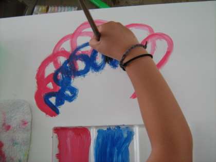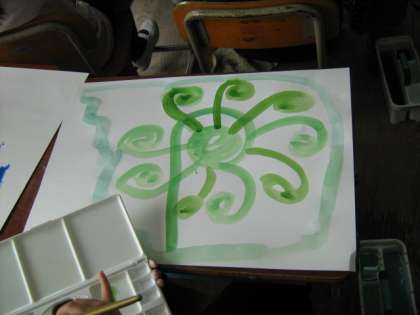図工の時間,いろいろな太さの筆を使って,線を書きました。