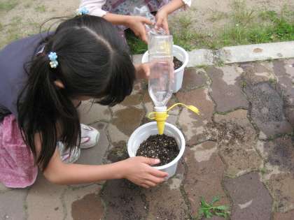 地域の方へ配るために,マリーゴールドの花の種を植えました。