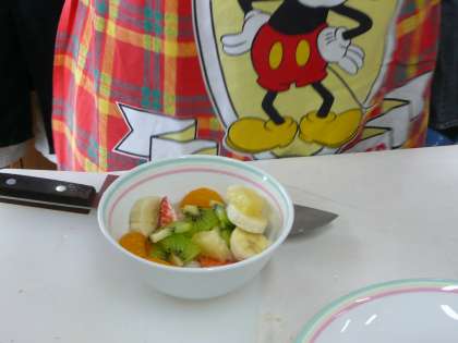 その家庭科の授業で「フルーツ白玉」をつくりました。