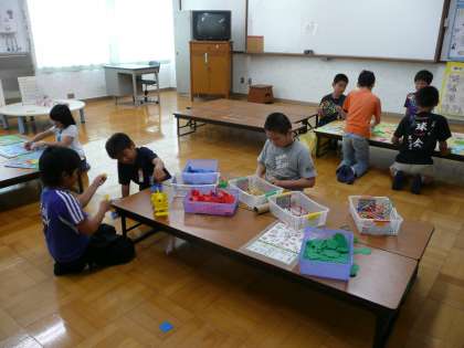 一人の子が「ねえ 算数ルームへ行こうよ」と誘いました。